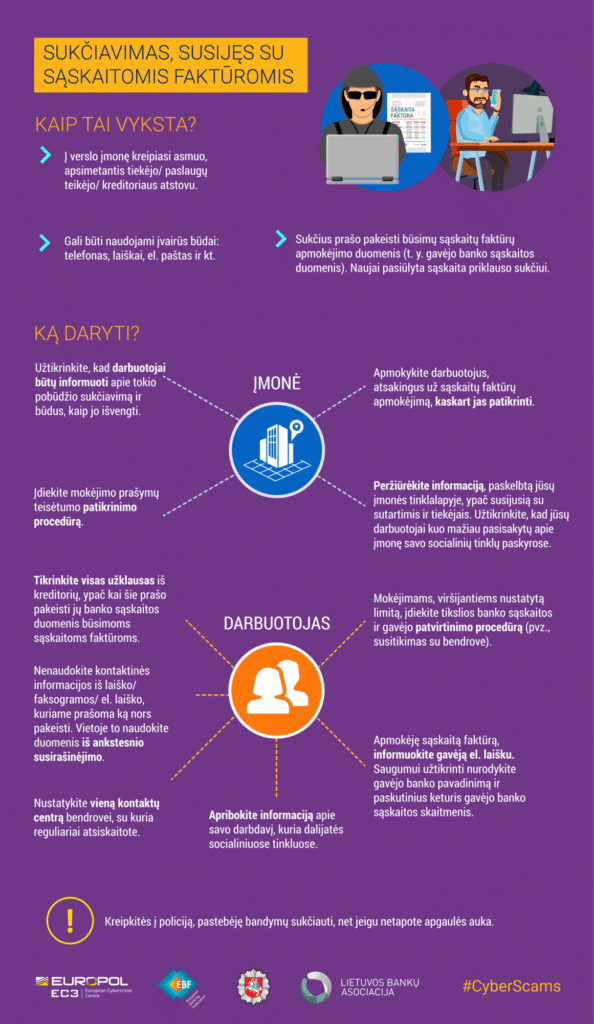 • Jei manote, kad perdavėte savo sąskaitos duomenis nusikaltėliui, nedelsdami susisiekite su savo banku.
