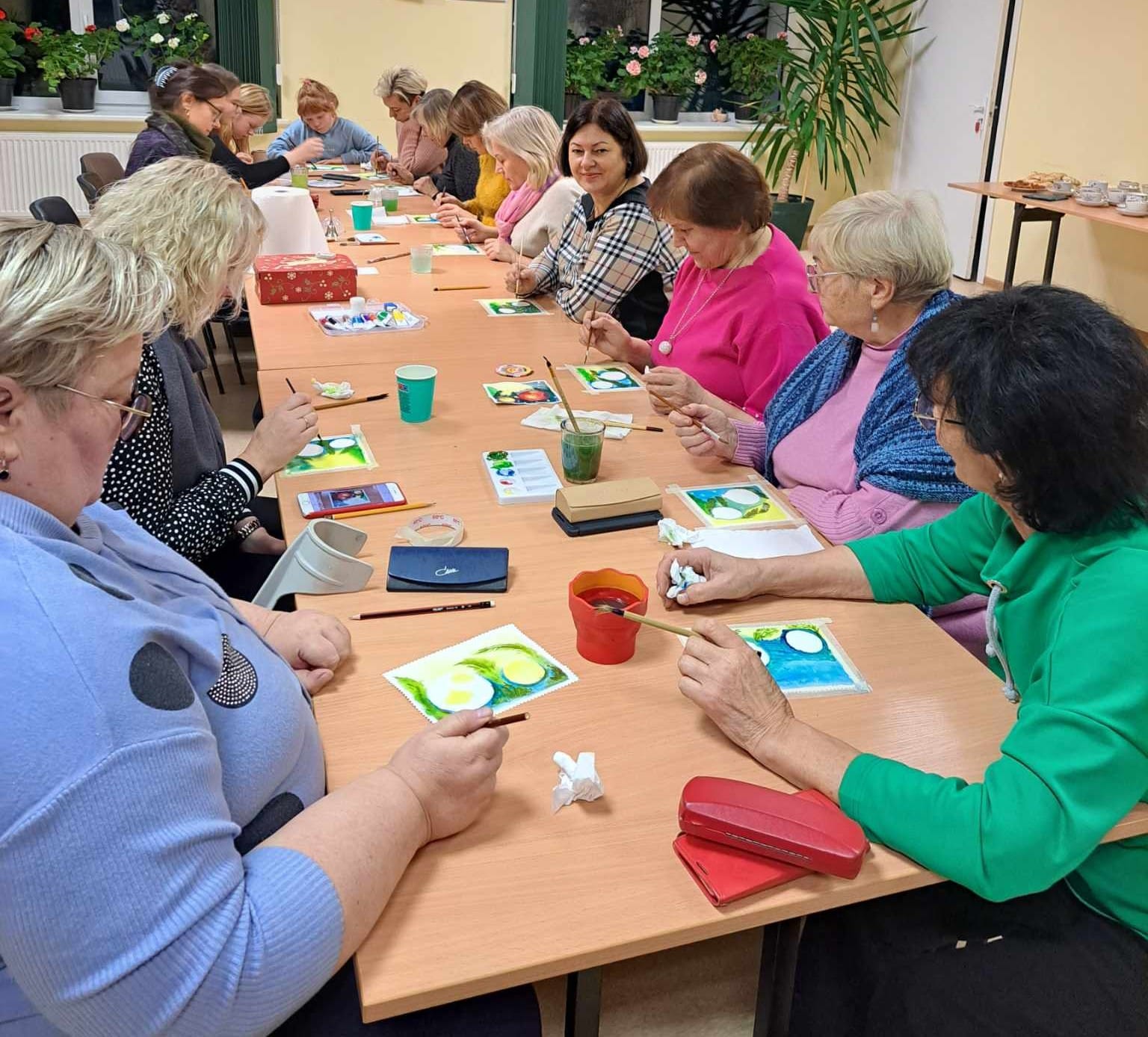 Prie to paties stalo sėdėjo ir senjorės, ir mokyklinio amžiaus jaunimas, dailės mokytoja. Aš pati prisipažinsiu teptuką paskutinįjį kartą rankose turėjusi tik mokyklos laikais.