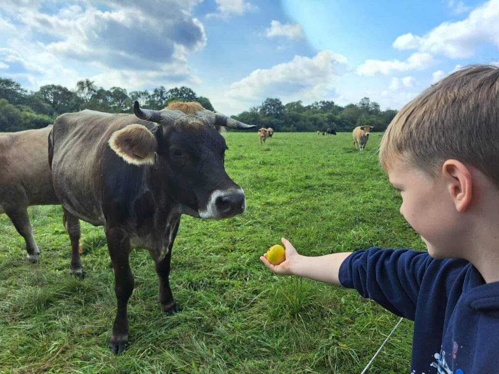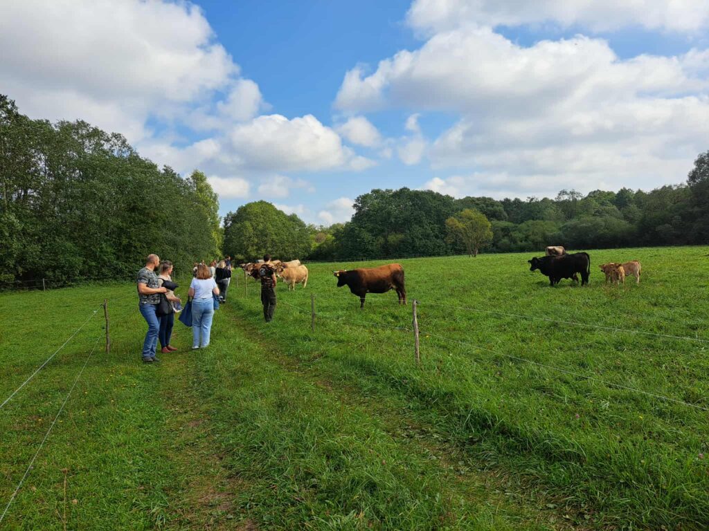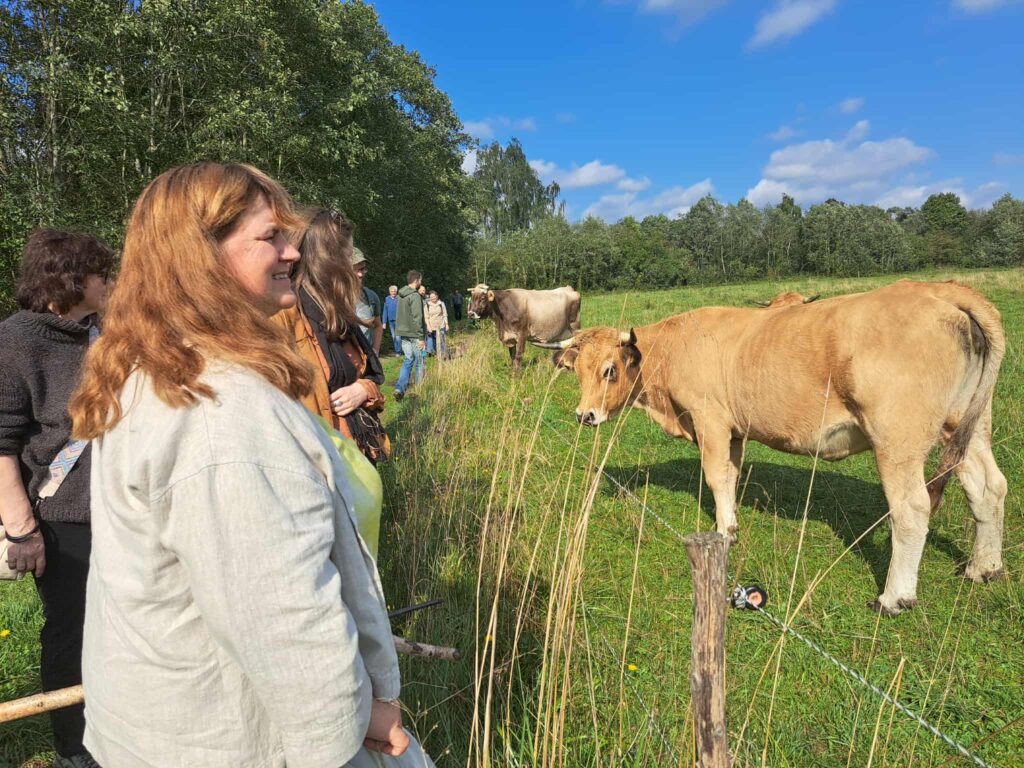 Dalyviai iš arti susipažino su ekologiško ūkio kasdienybe. Jie sužinojo, kaip laisvai besiganantys prancūziškų veislių mėsiniai galvijai padeda išsaugoti pievų ekosistemas ir biologinę įvairovę, kodėl sėjomaina bei natūralus tręšimas išlaiko dirvožemio gyvybingumą, ir kokių priemonių imasi ūkininkai mažindami klimato kaitos poveikį. Taip pat pristatyta, kokie reti augalai, paukščiai ir vabzdžiai grįžta į Nevėžio slėnį, kai žemė dirbama atsakingai.