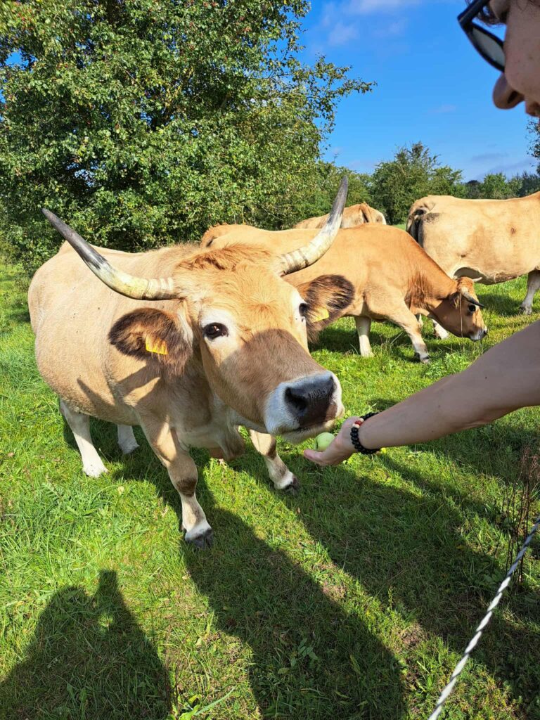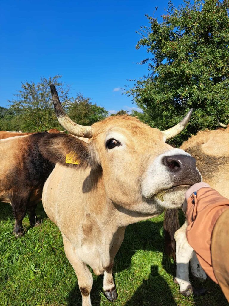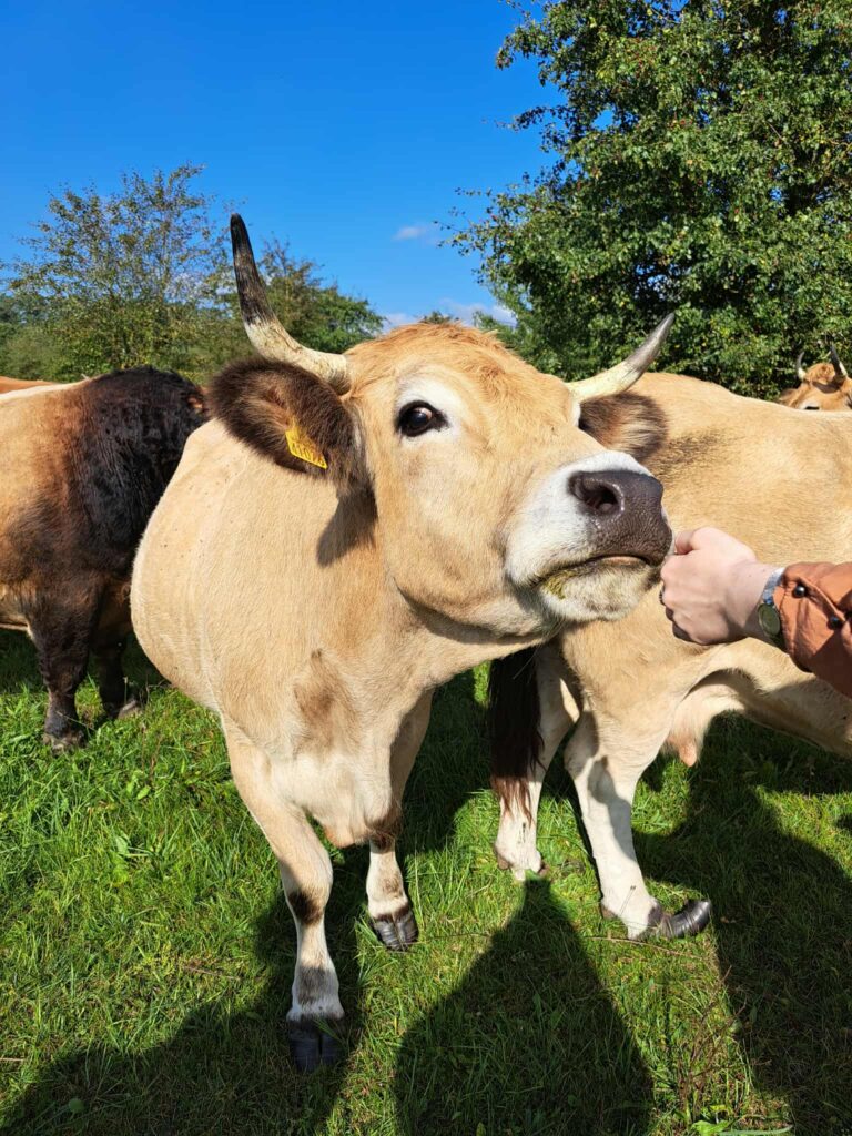 Veterinaro teigimu, čia ganosi laimingos karvės. Skiriasi tik ūkio dydis: Lietuvoje mažai gyvulių, laukai turėtų būto pilni besiganančių galvijų. Tuo tarpu Anglijoje pieno ūkiai gali turėti net 1200–1500 melžiamų karvių, mėsinių galvijų ūkiai mažesni – apie 120 galvijų. Šios prancūziškos veislės karvės yra nereiklios, gerai auga natūraliose pievose ir duoda kokybišką mėsą.