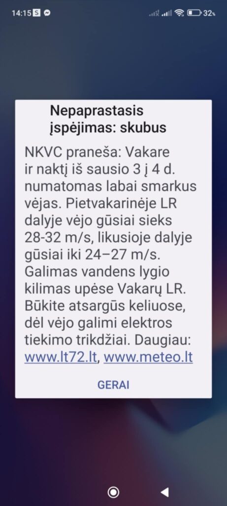 „Rytoj pirmoje dienos pusėje jie ims silpnėti, kitur išliks apie 15-20 m/s, tačiau jau rytojaus dieną tie stipresni vėjo gūsiai bus tiktai vietomis“, – teigė V. Patašius.