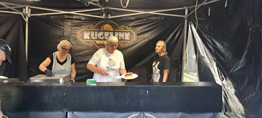 Buvo atgabentas ypatingasis Radviliškio kugelis su specialiai festivaliui paruoštu agurkiniu padažu.
