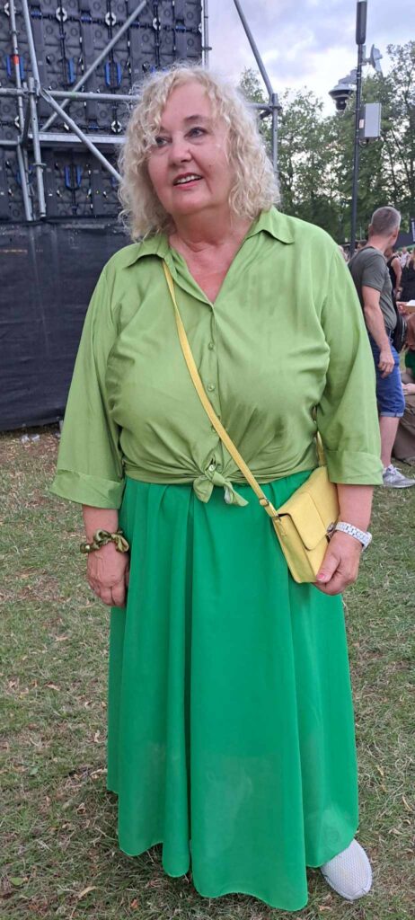 Festivalio aprangos kodą atitiko ir kėdainietė Vida Jablonskienė. Moteris pasakojo, kad kai draugai pakviečia mėgsta apsilankyti Agurkų šventėse, o šį kartą viliojo gera koncertinė programa ir geras oras. Specialiai žalių rūbų neieškojo, anksčiau turėjusi.