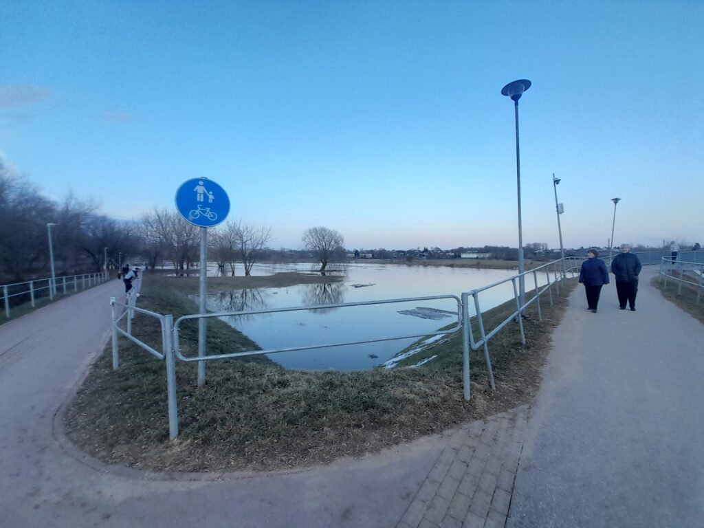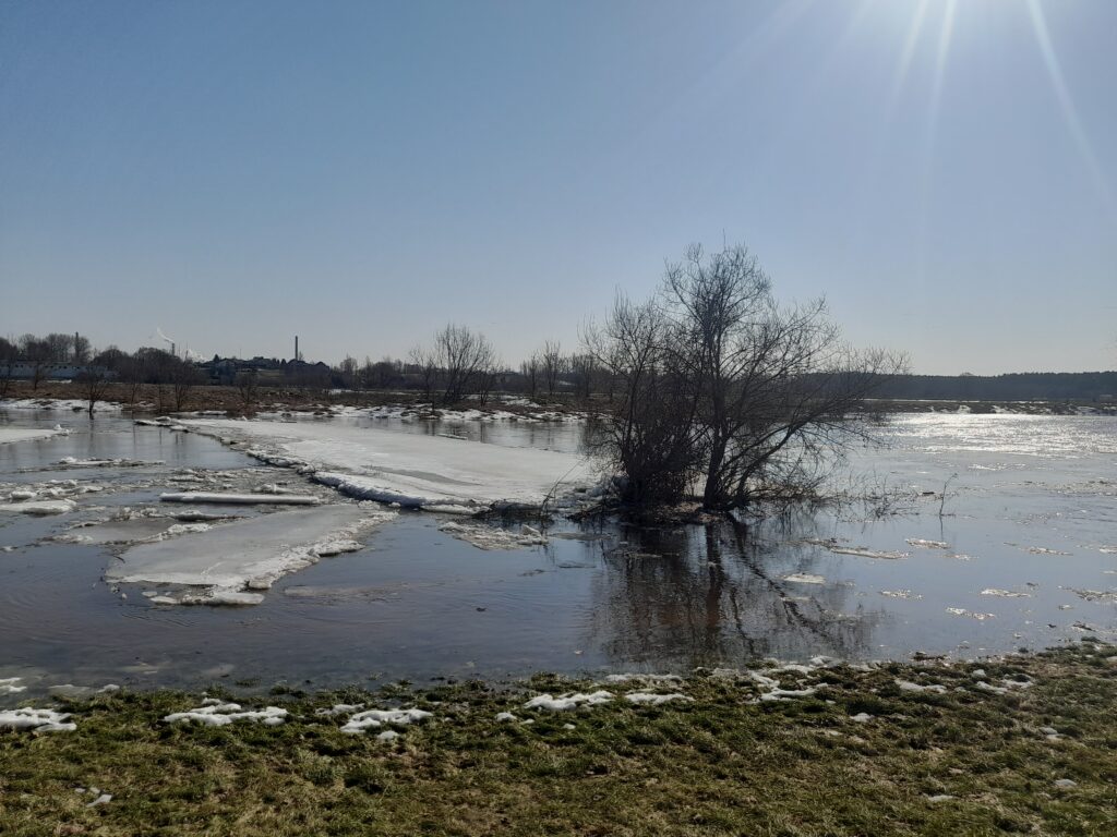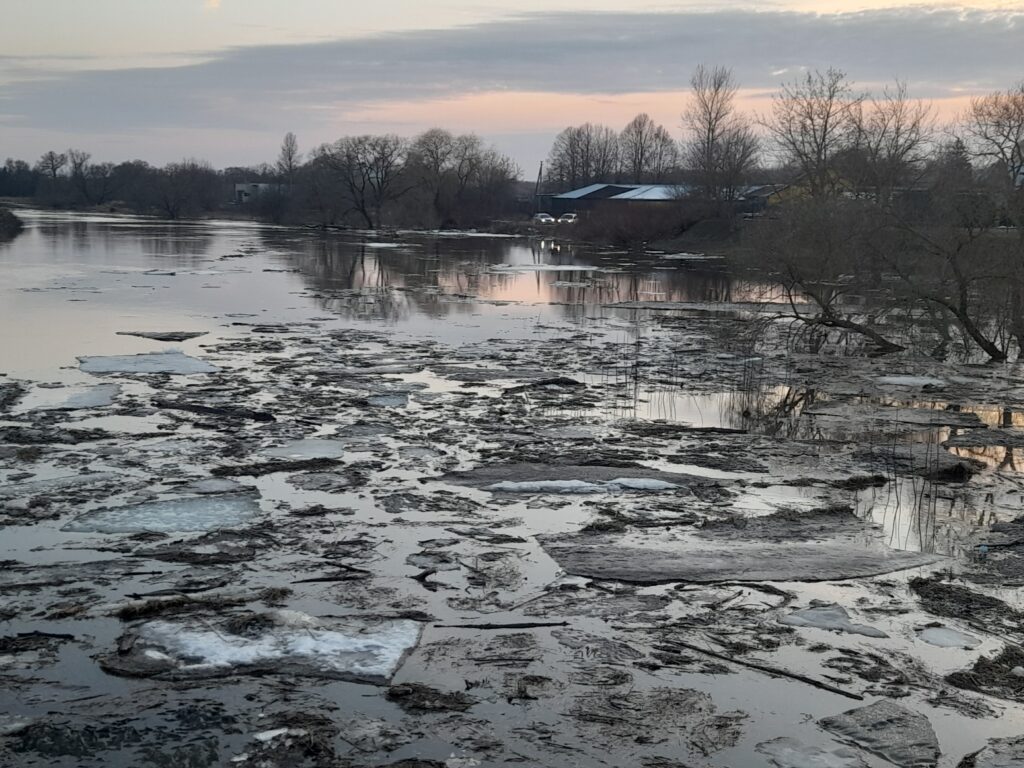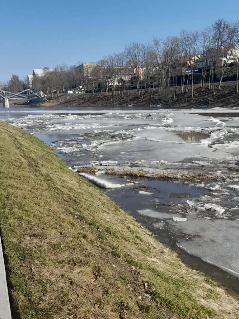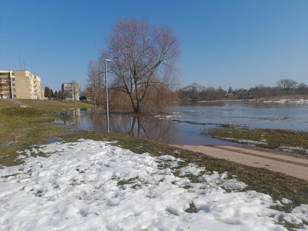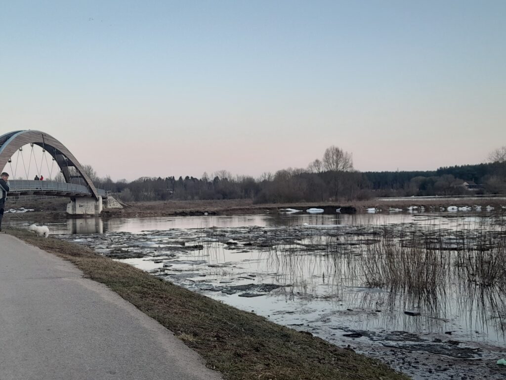 Beje, šeštadienį čia susiformavusios ledų sangrūdos kitą dieną neliko, bet vanduo vis tiek sparčiai liejosi į šonus. Panaši situacija buvo ir kitose vietovėse šalia Nevėžio.