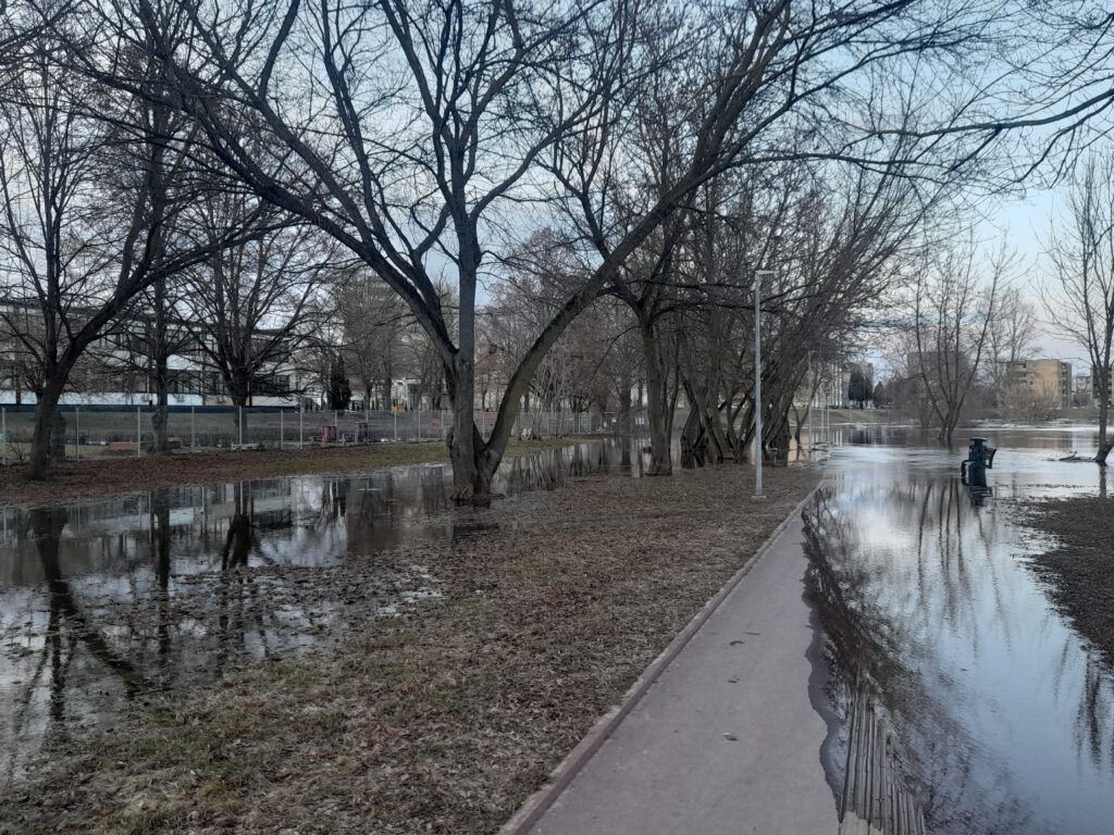 Šeštadienį pradėjo sparčiai kilti vandens lygis Nevėžio upėje ties Kėdainiais. Sekmadienį situacija tapo dar sudėtingesnė, vandens lygis per parą pakilo dar 85 cm., upė užliejo pėsčiųjų takus ir pievas ties senamiesčiu, prie Skongalio g. esančios užtvankos bei „Vaivorykštės“ tilto.
