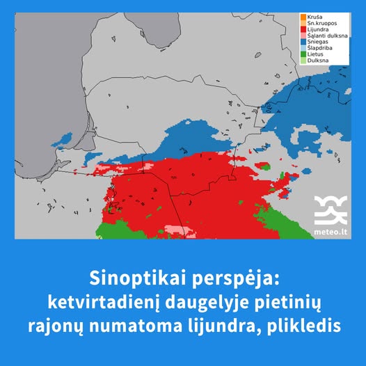 Pietiniuose rajonuose prognozuojama lijundra ir plikledis.