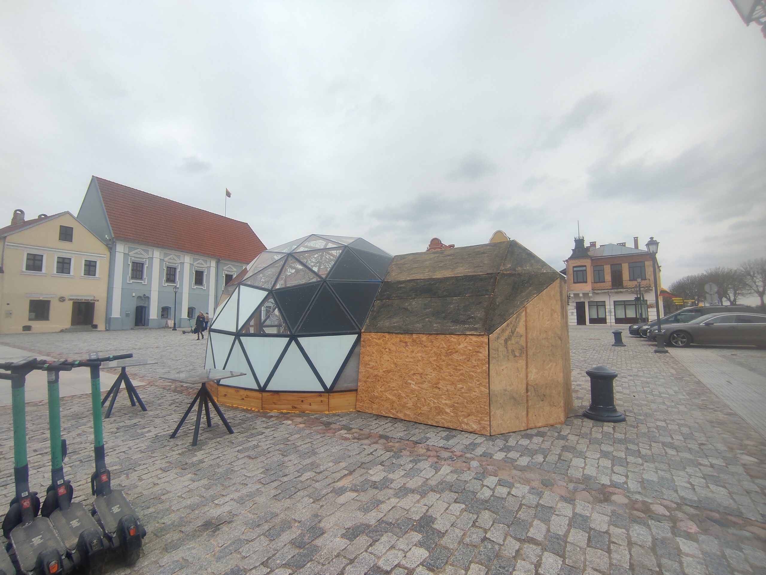 Į „Kėdainių mugę” kreipėsi sunerimę kėdainiečiai dėl Didžiosios Rinkos aikštėje prie esančio kupolo-kavinukės atsiradusio priestato. Skaitytojai klausia, kas davė leidimą / sutikimą tokiai kupolo „plėtrai” reprezentacinėje Kėdainių senamiesčio aikštėje?