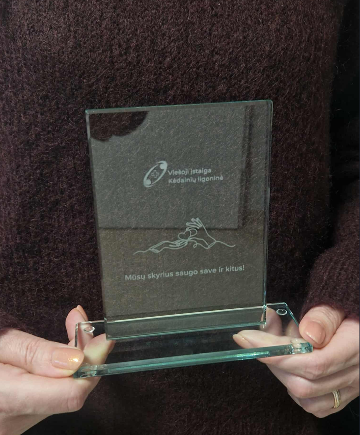 Tai puiki proga pagerbti tuos, kurie kasdien savo pavyzdžiu prisideda prie saugios aplinkos kūrimo tiek pacientams, tiek kolegoms. Už šiuos pasiekimus skyriams įteiktas simbolinis apdovanojimas „Mūsų skyrius saugo save ir kitus!“