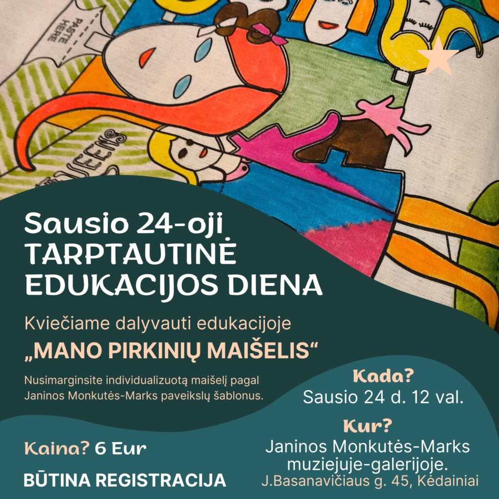 12 val. edukacija „Mano pirkinių maišelis“. Kūrybinės edukacijos dalyviai nusimargins sau mielą, individualizuotą, mylimų spalvų pirkinių maišelį. Bus naudojami jau paruošti tekstiliniai maišeliai su šablonine šilkografine spauda pagal Janinos Monkutės-Marks pop meno paveikslus. Dalyvių skaičius ribotas, tad prašoma registruotis – https://forms.gle/k7QT3vJMiTmQJv1T9 Kaina dalyviui – 6 Eurai. Atsiskaitymas galimas tik grynaisiais.