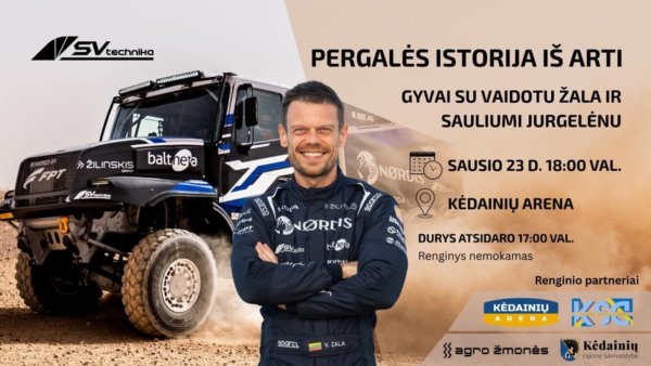 18 val. susitikimas su Lietuvos autosporto žvaigžde Vaidotu Žala ir jo ilgamečiu kolega Sauliumi Jurgelėnu. Sportininkai pasidalins savo 11 metų kelione pergalės link, patirtimis ir užkulisiais iš Dakaro ralio. Žiūrovams durys atviros nuo 17 val. Renginys nemokamas.