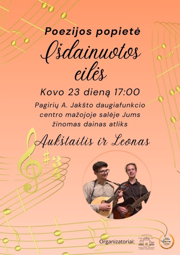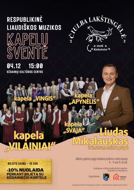 14 val. koncertas „Daumantų muzikantai”. Bilieto kaina – 12 Eur, vaikams – 5 Eur. Detalesnė informacija tel. 0 685 50807.