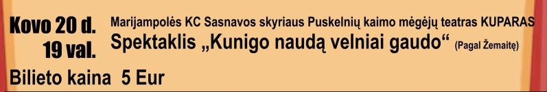 18:00 val. koncertas „Daumantų muzikantai”. Bilietus jau galite įsigyti Šėtos kultūros centre darbo dienomis ir renginių metu. Bilietus rezervuoti galite tel. +370 607 48189.