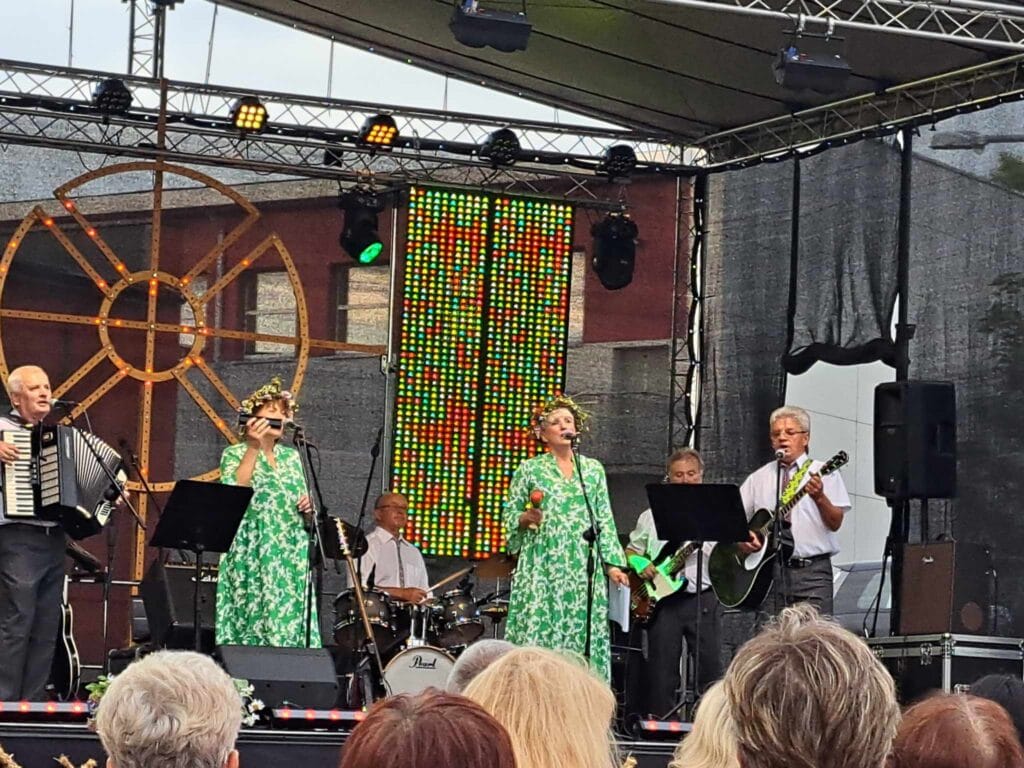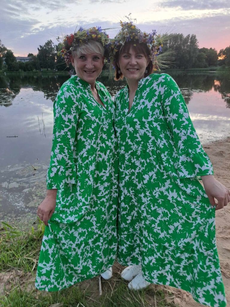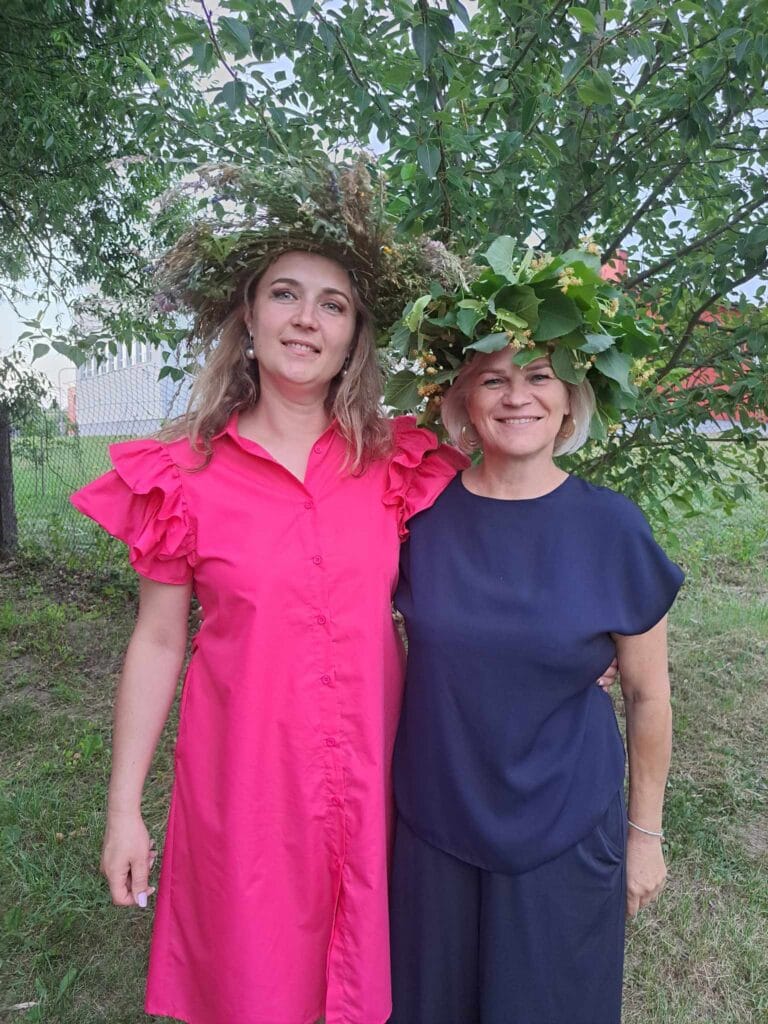 Joninių vainikais buvo pasidabinusios liaudiškos muzikos grupės ,,Klevas“ vokalistės – Jūratė Tylienė ir Jūratė Ramanauskienė.