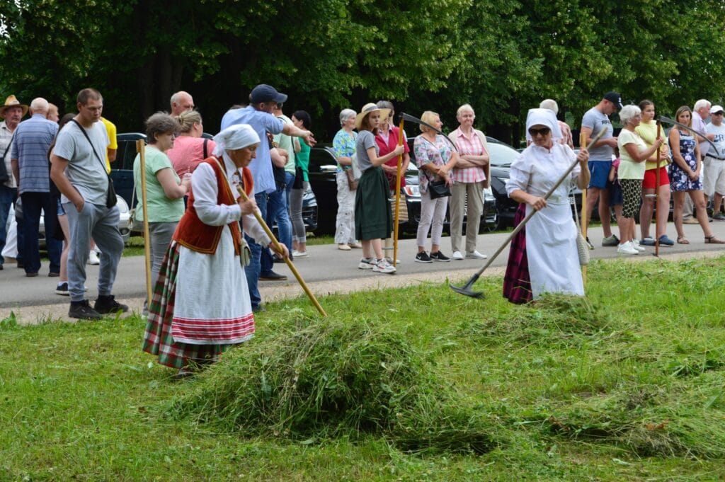 ,,Šiemet šienpjovių varžytuvėse dalyvavo 10 narių (ir dvi grėbėjos, o kaip be jų) ne tik iš Dotnuvos seniūnijos, Pagirių bendruomenės, tačiau sulaukėme svečių iš Žaiginio (Raseinių raj.). Žaiginiečiai taip pat turi senas šienavimo dalgiu varžytuvių tradicijas, tad į Vainotiškių bendruomenės kvietimą atsakė draugišku atvykimu ir tapo varžytuvių dalyviais. Šienpjovių varžytuvių sumanytojas – vainotiškietis Alfonsas Maniokas kasmet rūpinasi šienavimo laukelių parengimu ir iškilmingai uždega aukurą, skelbiantį šventės pradžią. Kaip ir kasmet, Vainotiškių bendruomenės nariai lauko žolynais apipina šventinį bromą, pro kurį, skambant liaudies dainoms ir tradicinei liaudiškai muzikai, įeina šienpjoviai ir šventės dalyviai,“ – teigė Žydronė Smulskienė.