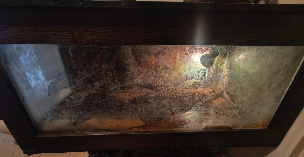 „1,42 x 0,68 m akvariume asmuo neteisėtai laikė 1,4 m ilgio ir 16 kg saugomą rūšį – suaugusį krokodilinį kaimaną (lot. Caiman crocodilus).