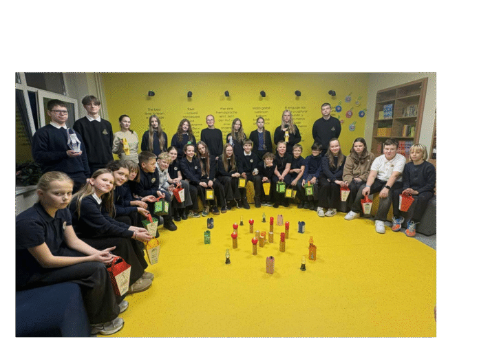 Vėliau visi dalyviai įsitraukė į kūrybines dirbtuves, kurių metu poromis gamino žibintus – šventės simbolį, primenantį dalijimosi šviesa ir gerumu svarbą. Mažieji mokiniai su vyresniaisiais dirbo drauge, dalijosi idėjomis ir šypsenomis, taip kurdami šiltą bendrystės atmosferą.
