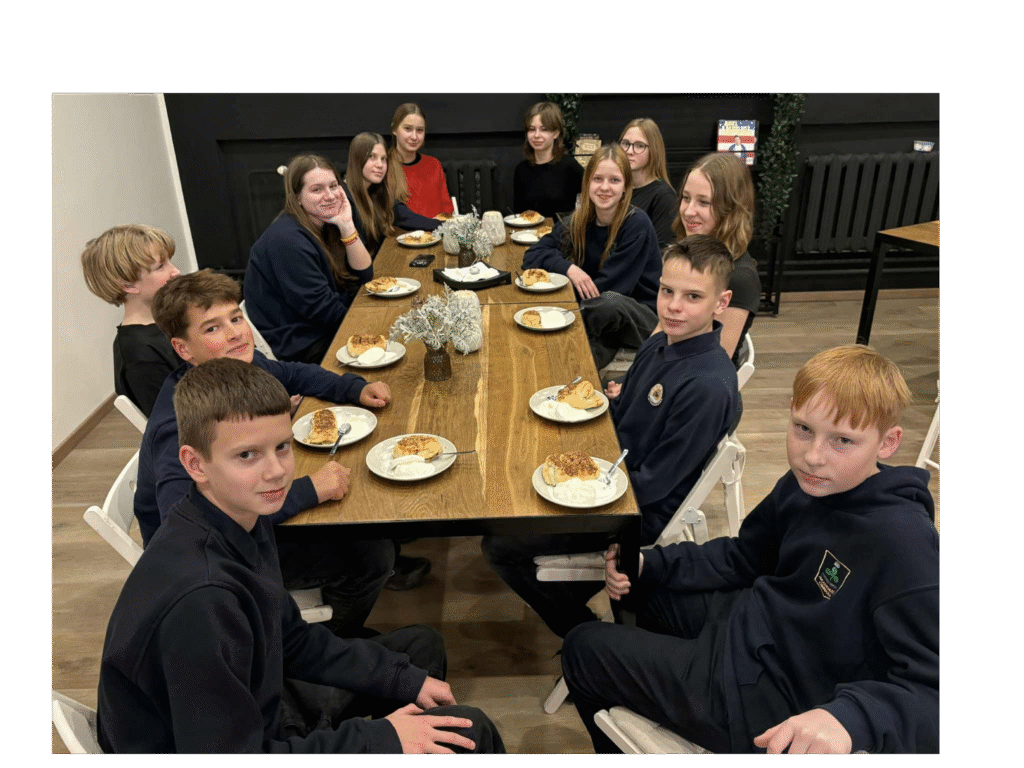 Šis saldus patiekalas, dažnai ruošiamas Šv. Martyno dienos proga, pripildė mokyklą jaukiais cinamono ir obuolių kvapais bei šventinės nuotaikos laukimu.