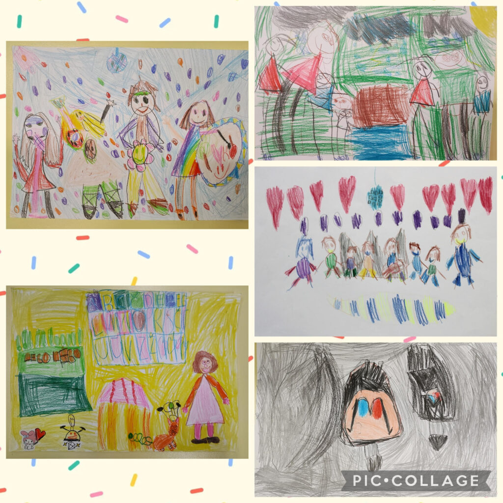 Vaikų darbuose atsispindėjo jų mėgstamiausios spalvos, mylimi žaidimai ir brangūs draugai, sukuriantys jaukią, kūrybišką ir džiaugsmo kupiną aplinką.