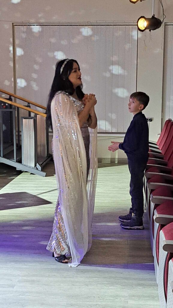 „Šis vakaras bus kitoks, nei susirinkusieji galėjo tikėtis – dainuos Monika Falcon (sopranas), jai akomponuos Rūta Blaškytė“, – pristačiusi scenoje dukrą sakė Giulija.