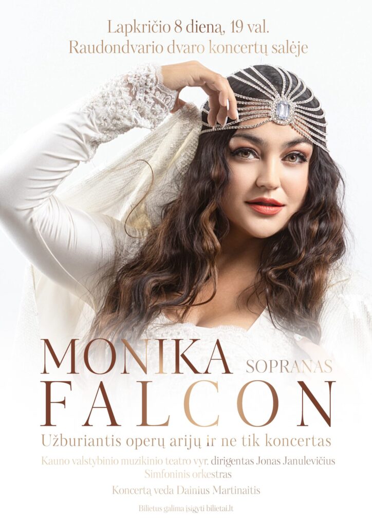 Lietuvos vardą užsienyje garsinantis sopranas Monika Falcon pakvietė į užburiantį operų ir ne tik koncertą drauge su simfoniniu orkestru ir dirigentu Jonu Janulevičiumi, vyksiantį kitų metų vasario 19 d. Kauno valstybinėje filharmonijoje.
