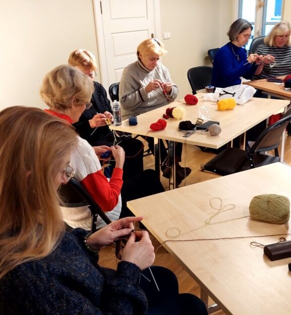„Kėdainietės darbščios, moka megzti. Čia aš jau antrą kartą – labai smagu. Kažkada buvo edukacija, tuomet mezgėme raštuotas pirštines. Dabar mezgėme dvigubą riešelį, o kam bus įdomu – pabaigs ir visą pirštinę.