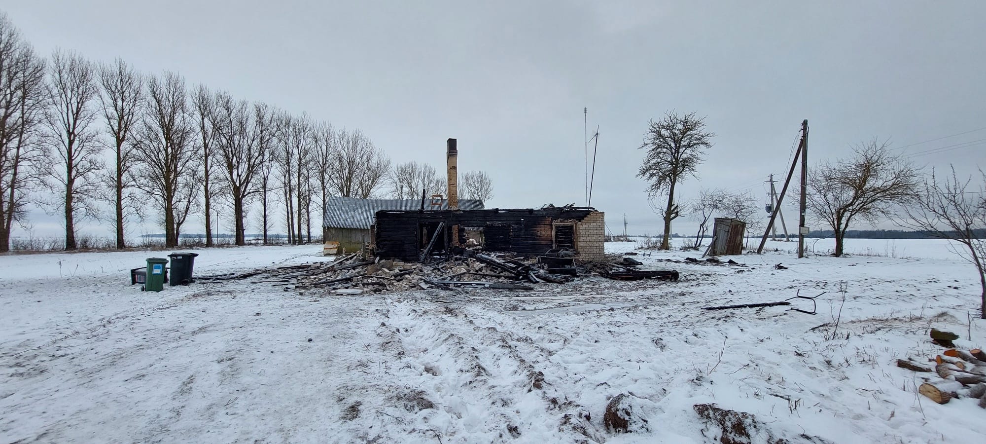 Dovydiškių kaime kilusio gaisro metu namas visiškai suniokotas liepsnų. Sudegė visi viduje buvę baldai ir namų apyvokos daiktai. Ar name buvo dūmų detektorius, nustatyti nepavyko.