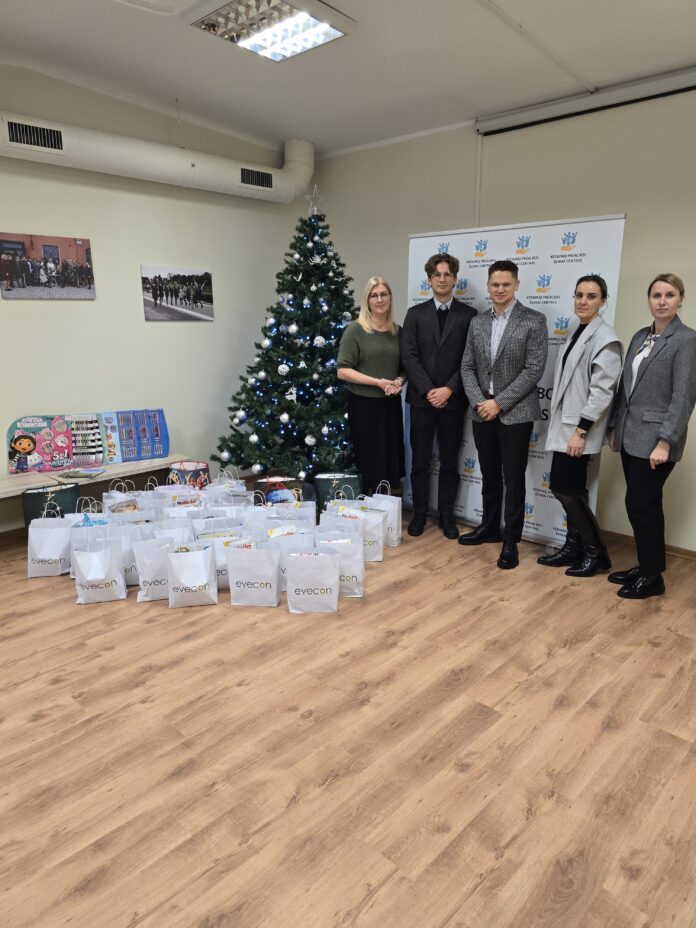 Šventiniu laikotarpiu „Evecon“ atstovai apsilankė Kėdainių pagalbos šeimai centre, kur su šventėmis pasveikino centro globojamus vaikus. Iš viso kalėdinės dovanos pasiekė 40 vaikų – jie sulaukė LEGO konstruktorių, piešimo knygelių, minkštų žaislų ir saldumynų.